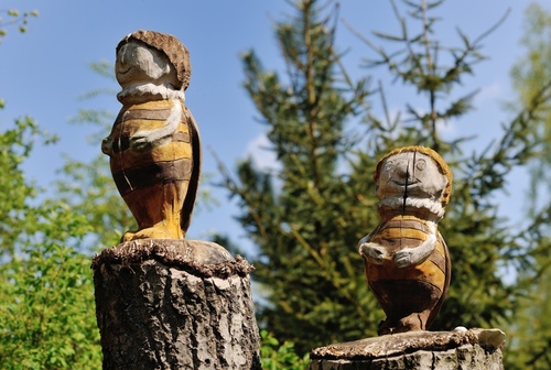 útulných chatiček známý především díky jedinečným dřevěným sochám rozestavěným