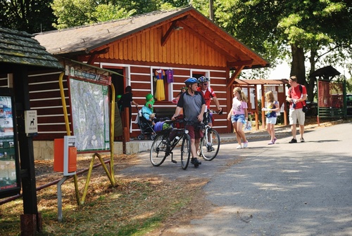 po celém areálu. Vybudována je zde také pohádková stezka, po níž nás provedou večerníčkové postavičky. Svézt se tu